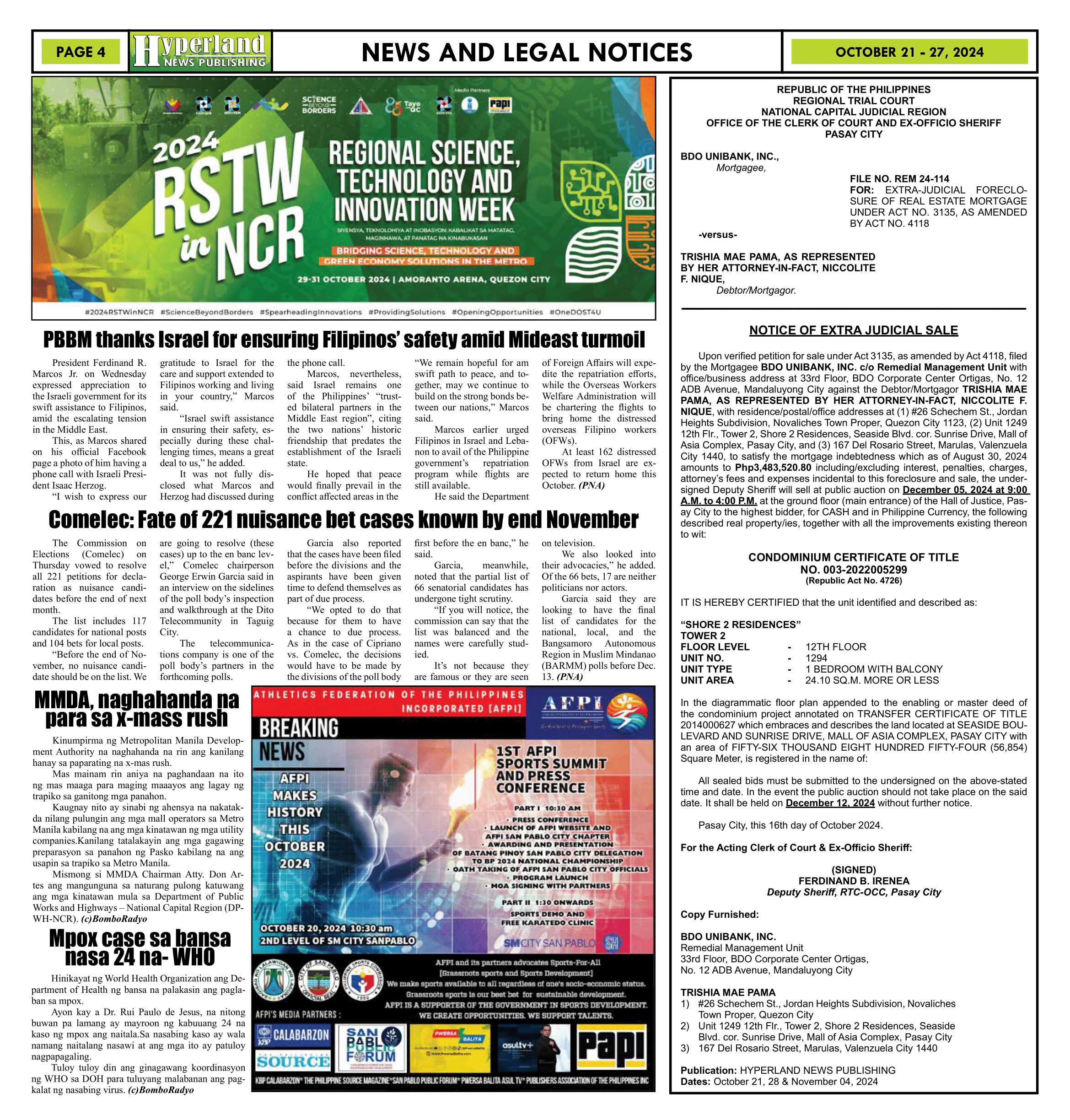 October 21 - 27, 2024