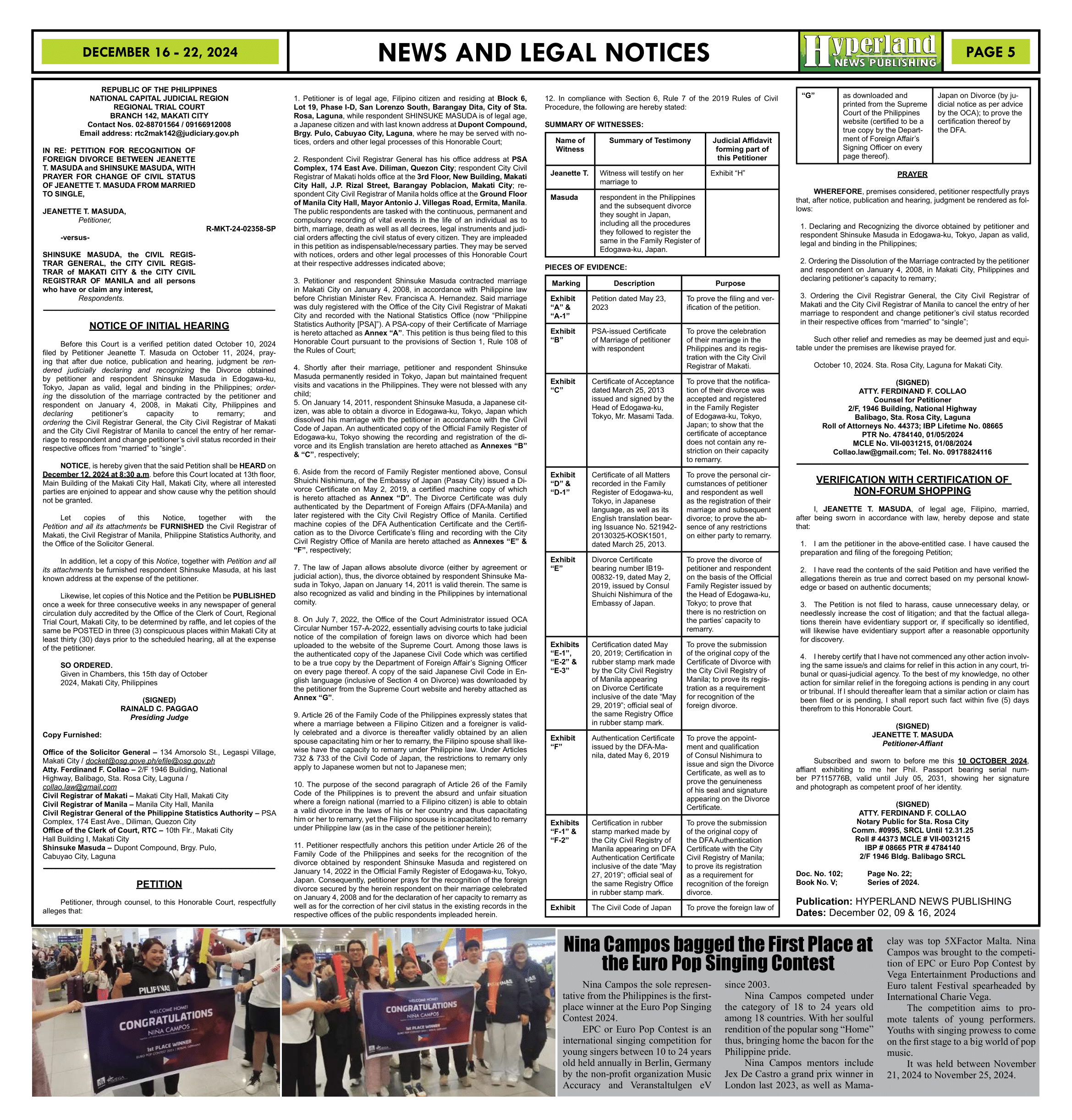 December 16 - 22, 2024